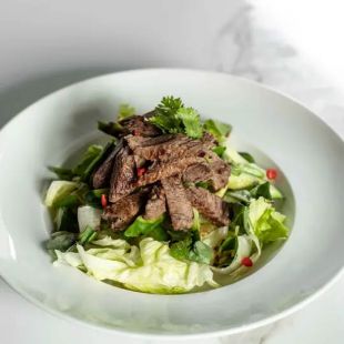 Grilled beef sliced finely served on a bed of lettuce with a Thai sauce