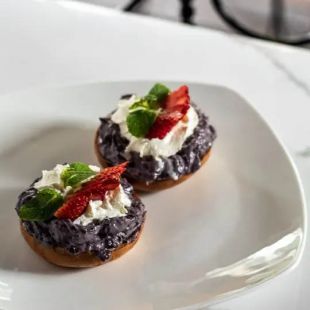 Blueberry bagel with strawberry and mixed berry infused mascarpone - served warm