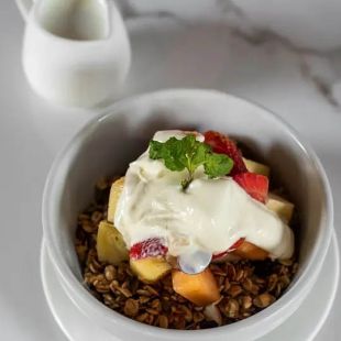 Seasonal fruits served with Australian yoghurt, mint and honey