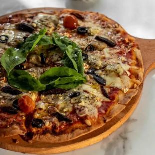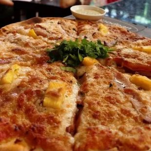 Chicken breast sauteed in parmesan served on a tomato based pizza