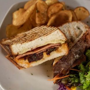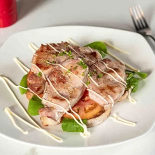 Streaky beef pressed with sundried tomato and gooey mozzarella cheese